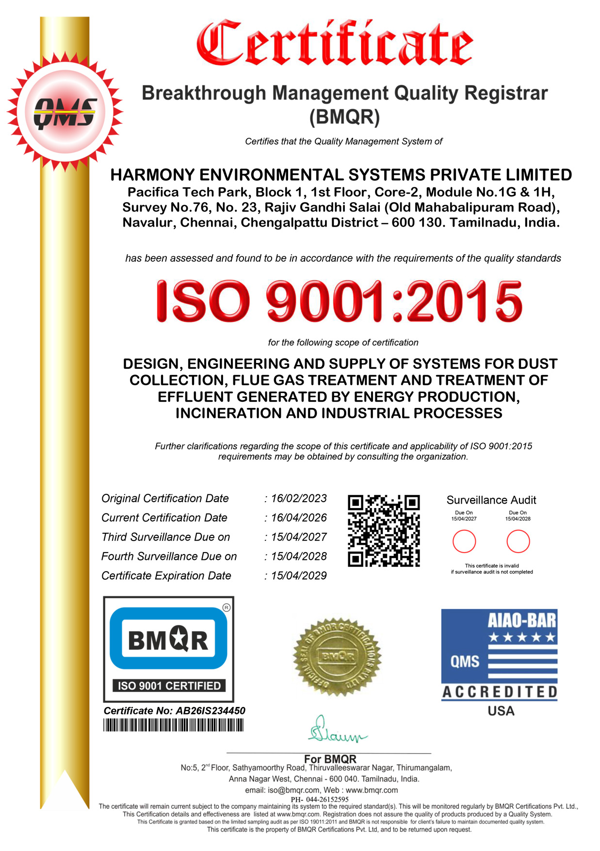 Harmony Environmental Systems is committed to continuous improvement and is a certified ISO 9001:2015 company.